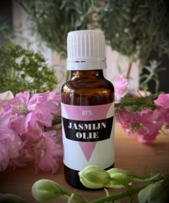 In elk jasmijnbloemetje zit een heel klein beetje Etherische Olie. Honderden bloemen bij elkaar maken een druppel olie. Dat maakt Jasmijn Olie tot het meest dure en exclusieve Etherische Olie product. BT’S Jasmijn Olie is synthetisch van soort. De bijna onbetaalbare pure olie is zeer goed geëvenaard in deze synthetische vorm. BT’S Jasmijn Olie is rood tot roodgeel van kleur en heeft een sterke, warm bloemige en exotische geur. Deze zwoele geur van Jasmijn blijft lang hangen in de ruimte. BT’S Jasmijn Olie heeft ontstekingsremmende eigenschappen, werkt rustgevend en heeft een antidepressieve- en angst verdrijvende werking. Verdamp deze essentiële olie in een aromabrander of voeg enkele druppels toe aan een bad- of massage olie.
